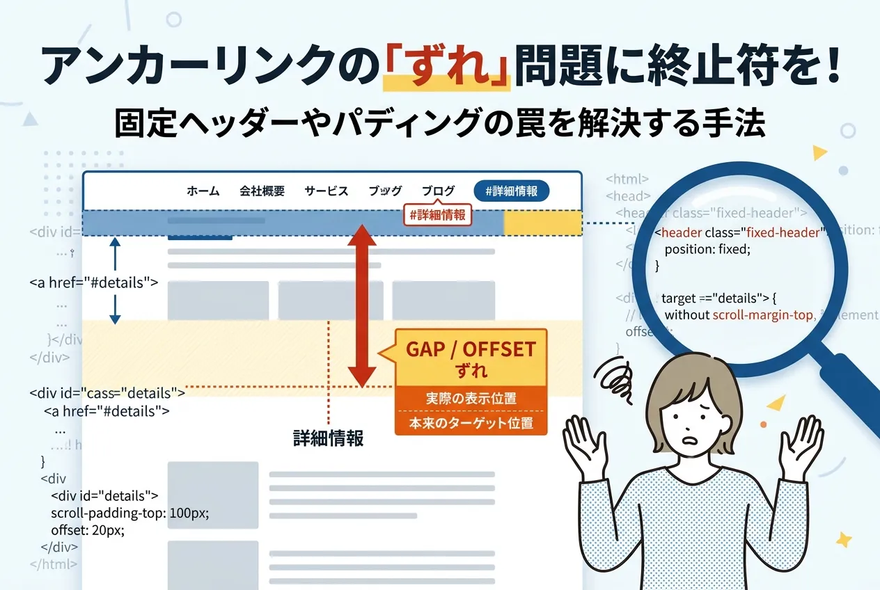 どうやってもページ内リンク(アンカーリンク)のジャンプ先がズレてドはまり。