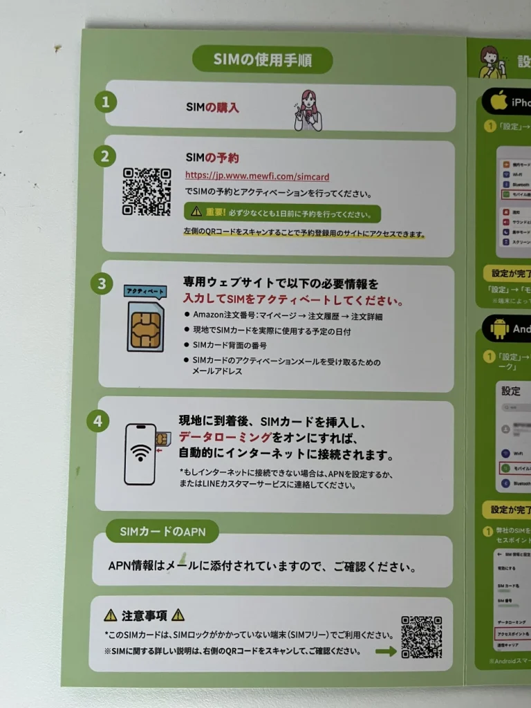 旅行前日までにWEBで利用する期間を入れてSIMカードを有効化(アクティベート)しておきます。