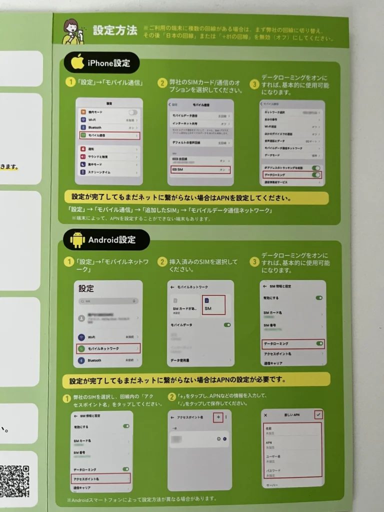 で、現地でSIMカードを差し替えて、上の設定をするだけ。