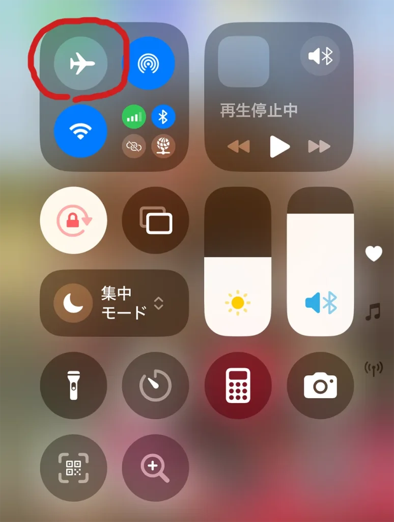 - 機内モードをON→OFFする