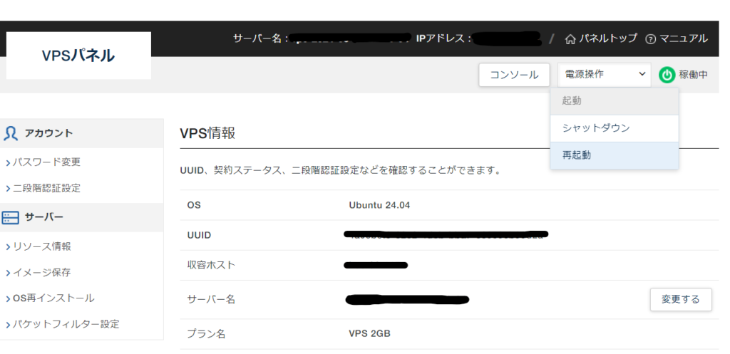 3.sshdの再起動。しかしこれがどうやっても変更が反映されない。結局XserverのVPS管理パネルからサーバー再起動をやってやっと反映された。
